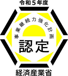関東経済産業局より「事業継続力強化計画」の認定を受けました。